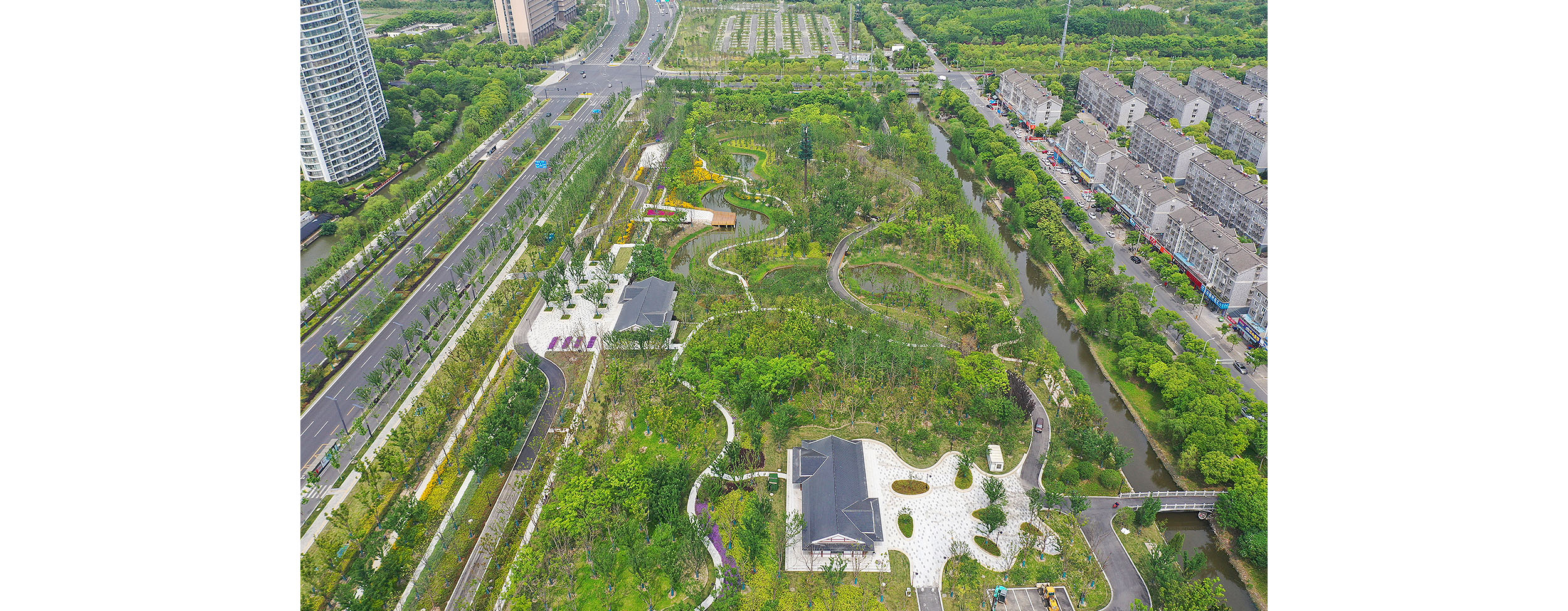 项目位于南通市崇川区啬园路南、工农南路东侧,园林路西侧,总面积约22 公顷,是南通市狼山国家森林公园的组成部分和门户节点。绿建公司选派具有丰富经验的设计、施工团队,充分发挥EPC设计施工一体化总承包优势,根据项目特点,定位“幻林花溪”,以森林、花园为总体建设目标,兼具生态修复、门户形象展示、休闲游憩等复合功能,以自然生态造景理念贯穿始终,融入城市森林构建的全新概念,用一系列公共开放空间勾勒出生态园林城市的美丽愿景。