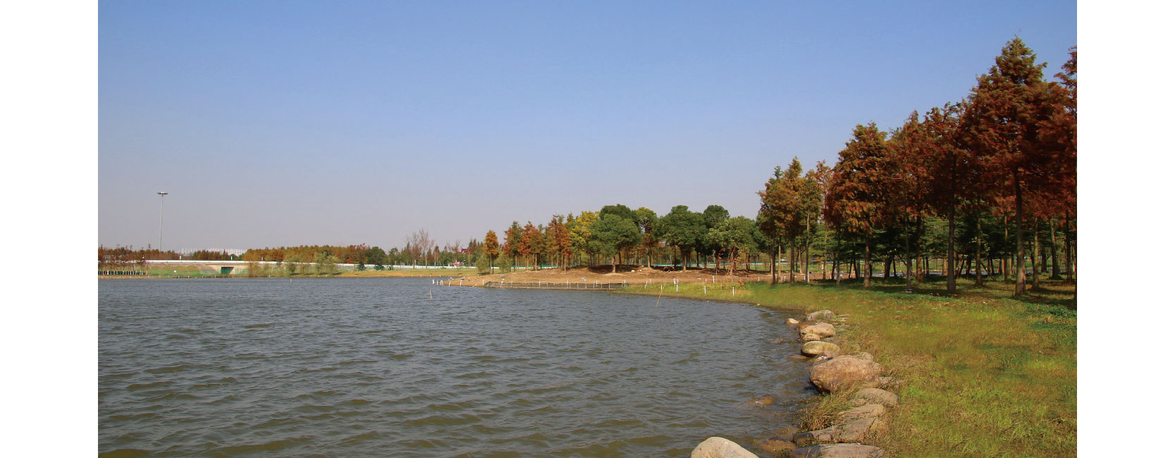 崇明岛风光秀美,空气清新,是生态旅游、休闲度假的绝佳之地。陈家镇收费站绿地位于G40入崇明岛的咽喉地带,是上海城区到东滩鸟类自然保护区、东平国家森林公园等休闲观光点的主要通道,是陈家镇生态展示的门户形象。 绿地内乔、灌、草、水错落有致,以湖泊和森林为景观特色。我司依据现有河道梳理岸线,用卵石护坡衔接缓坡草坪与水面。林带内用香樟、雪松、池杉、栾树等粗放管理型乔木搭配层次丰富的花灌木,常绿、落叶林混相交融,毫无矫揉造作感,勾勒出一幅优美的风景画,水清林深,鸟儿穿梭其间。 浓郁茂密的生态林,提升了陈家镇的景观形象,改善了片区的生态气候,与陈家镇建设成上海生态示范城镇的目标相得益彰。 |
