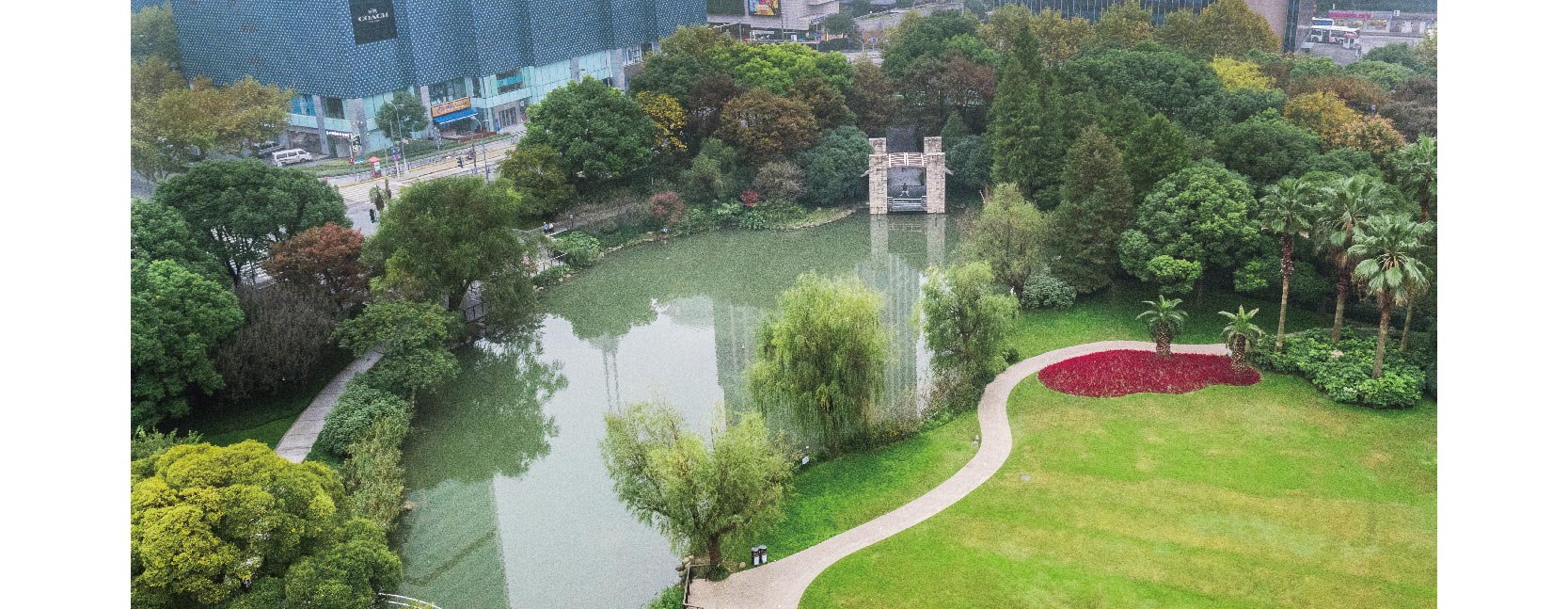 延中绿地,是上海市中心最大的开放式公共绿地,园内处处绿意盎然、风景宜人,充满诗情画意,是中国现代园林的经典之作。项目在园林建设史上率先成功移植超大规格乔木,成为当时引领行业的标杆项目。