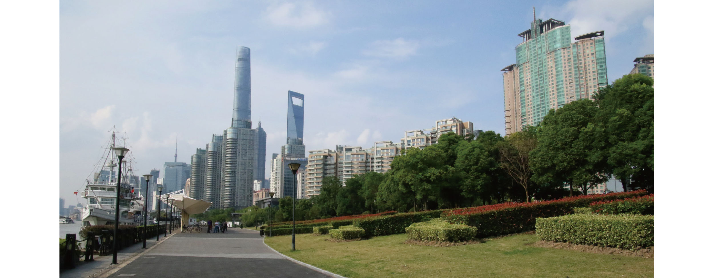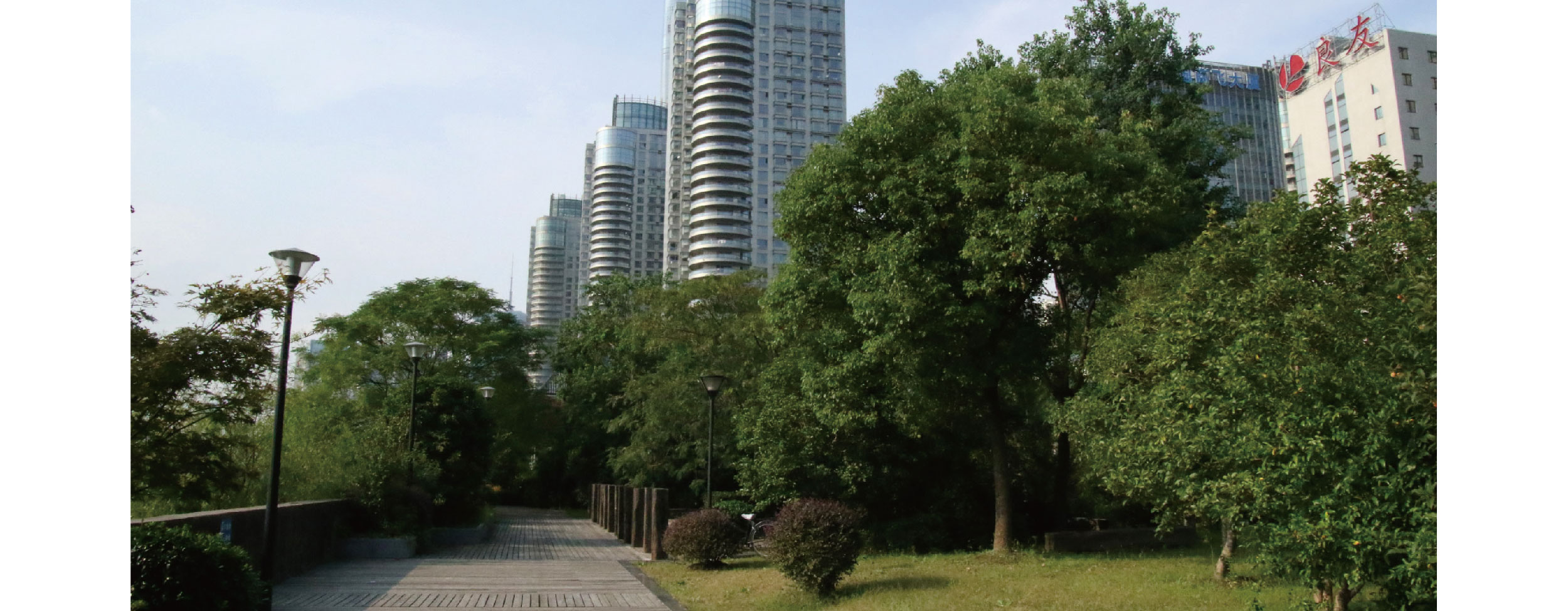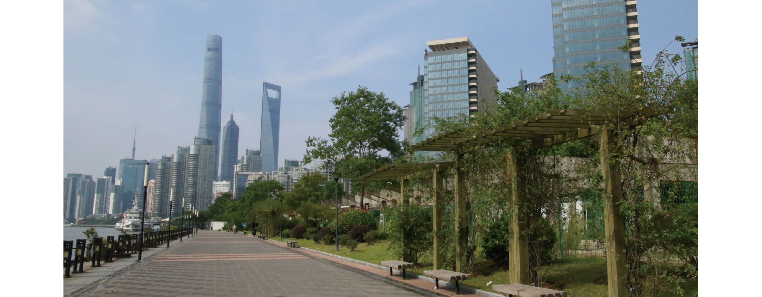 老白渡滨江绿地沿黄浦江东岸延伸1000多米,北至张杨路,南至塘桥新路,总面积8.9万平方米,由原上海港最大的煤炭装卸区和上海第二十七棉纺厂区域改建而成。 将工业历史符号适当保留和恰当融入到现代时尚的休闲绿地内,是施工中的难题。通过保留原煤炭码头使用过的煤斗、抓斗、铁锚、烟囱等实物以雕塑形式点缀在滨江大道上,以展示时代的变迁。改建原码头上的系缆桩、高架运煤廊道、煤仓、链斗式装卸船机和带门座起重机轨道,延续过去的辉煌,重塑城市新景观。利用基地内的废旧材料改造成座凳、花箱、广场铺装等设施。这些元素的保留和重塑,使人们在观光休闲时自然地与历史进行交流。 为解决外围交通的干扰,沿城市道路一侧堆高2米地形并密植乔灌木,形成一道绿色屏障,将城市的喧嚣隔离于绿带之外。绿地内树木成荫、花草繁茂,色叶植物的配置,将滨江渲染成一幅彩色的背景画。通过种植形式的调整,把滨江建筑群的美丽天际线引入视线内。 滨江绿地的建成,为附近居民提供了一个休闲、观光的好去处,徜徉在滨江步道上,让人们更全面地看到上海母亲河美丽的姿容。 |
