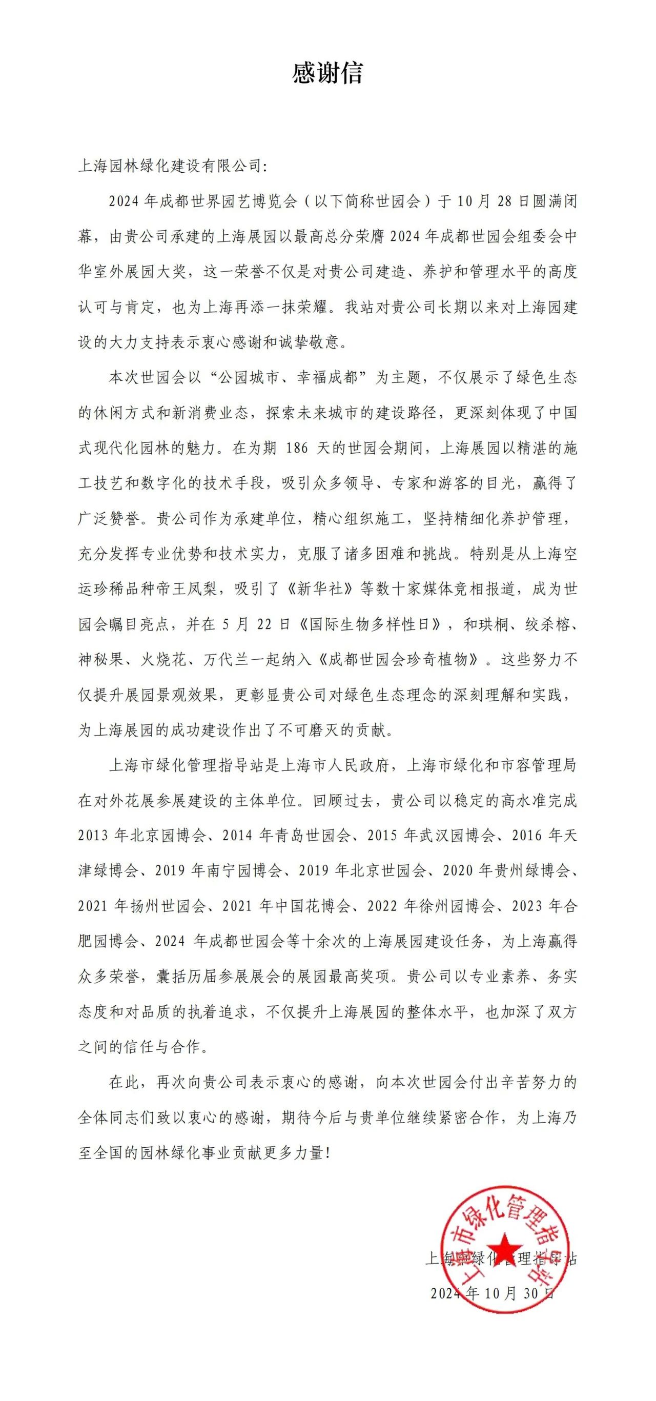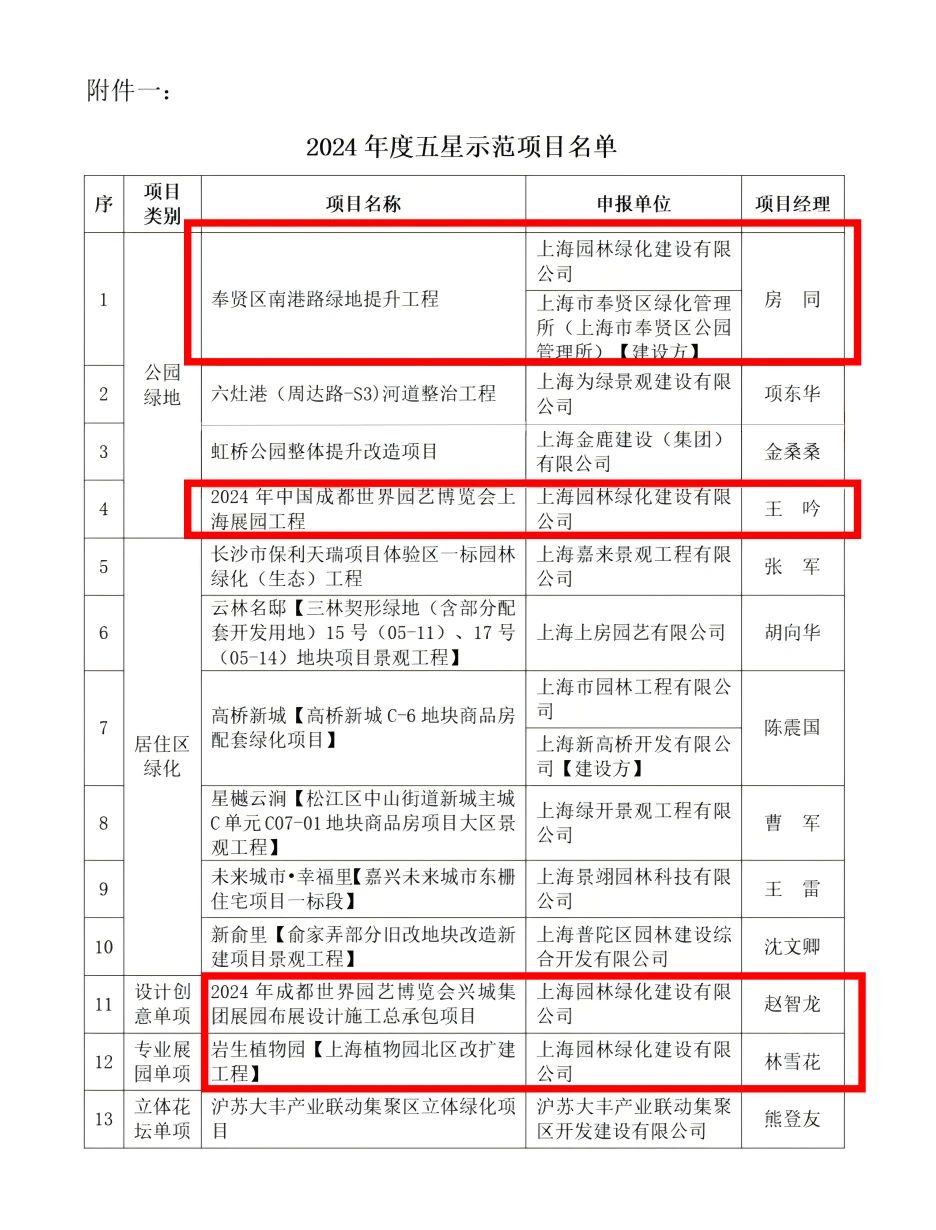 公司中标上海滨江森林公园绿化养护、上海辰山植物园园林植物养护